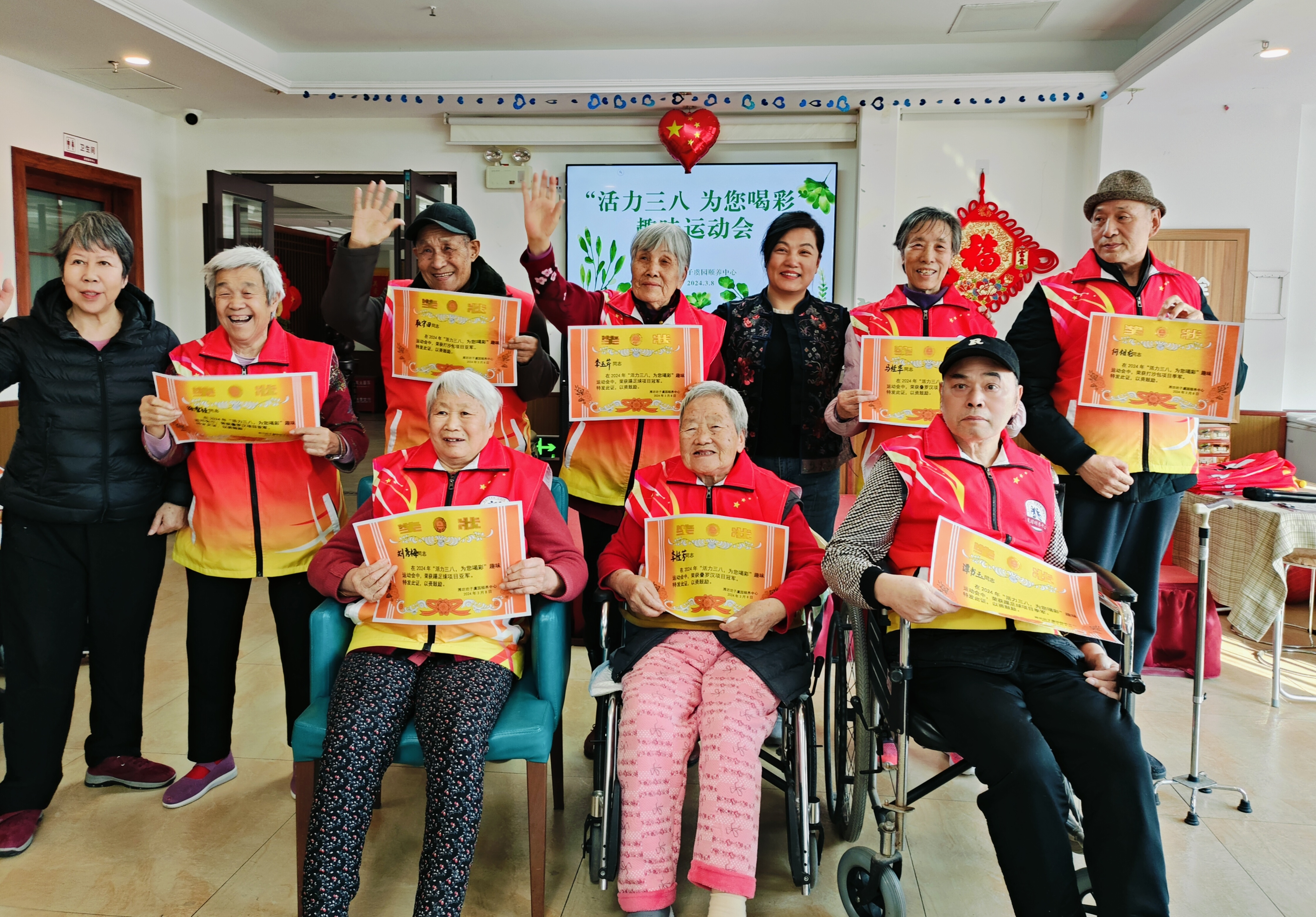 春暖花开、草长莺飞 在这个美妙的春日里,为了庆祝国际劳动妇女节,弘扬女性自尊、自信、自立、自强的精神,虞园颐养中心举办了一场别开生面的“活力三八,为您喝彩”趣味运动会。此次活动旨在丰富养老院的生活,增进老人之间的友谊,展现新时代老人的风采。