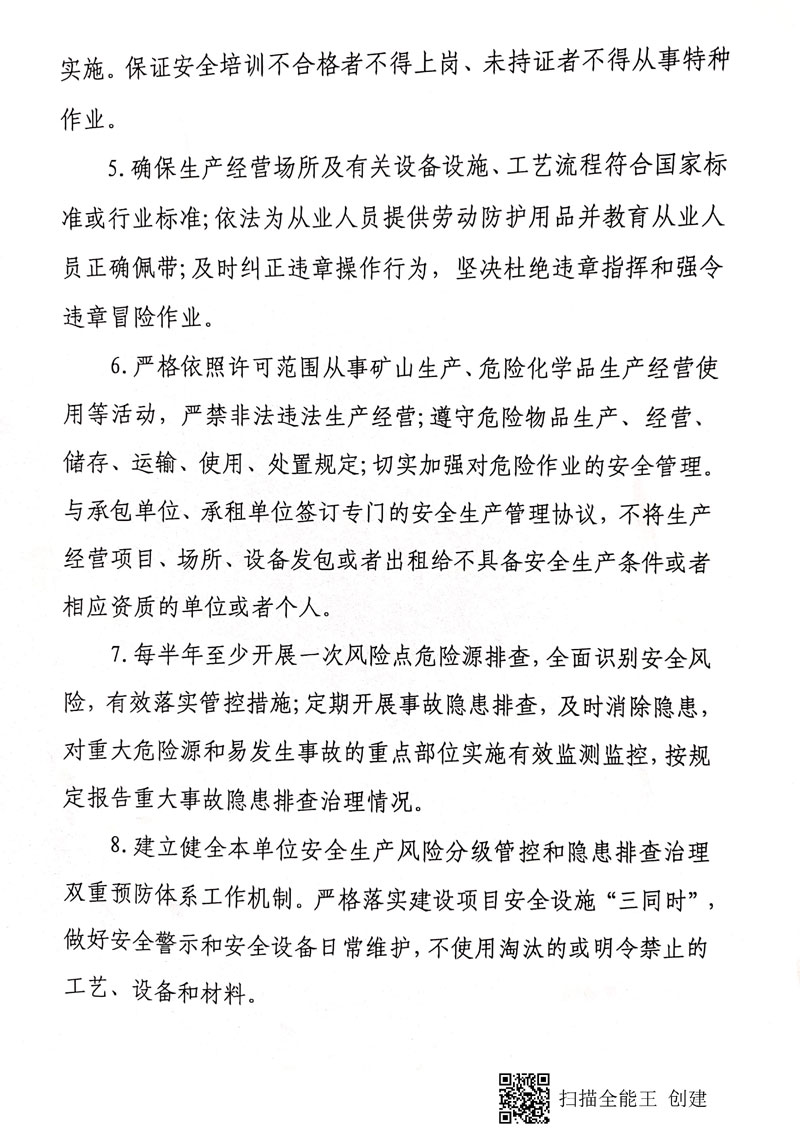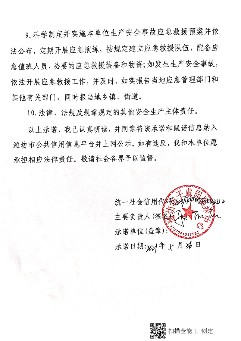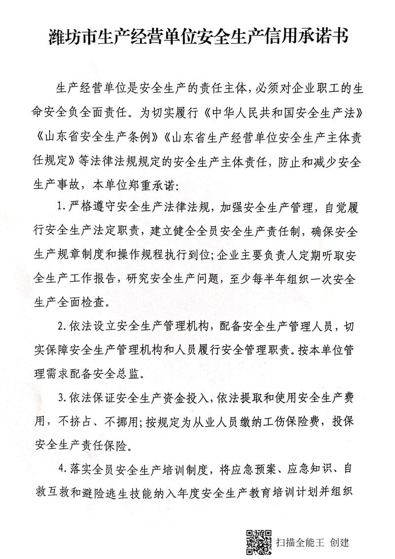 潍坊市生产经营单位安全生产信用承诺书